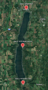This year’s clean up activity will be focused on three primary areas. The north end, the south end, and near the NYS Boat launch. You can select to start at one of the three staging areas. A coordinator will be at each site to provide disposable gloves, garbage bags and safety vests. See the map below for site locations.