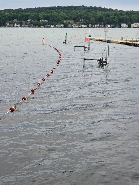 This is a special project to try to determine if it is possible to disrupt or otherwise impact the potential for HAB events in a targeted area of the lake, in this case the CSM swim area. There are three thrusters placed in the water producing a current northward through the swim area. SUNY Brockport is sampling the water regularly throughout the summer and fall. As no HAB events have occurred in 2025 while the Thrusters were operating, the current plan is to repeat the testing in 2026.